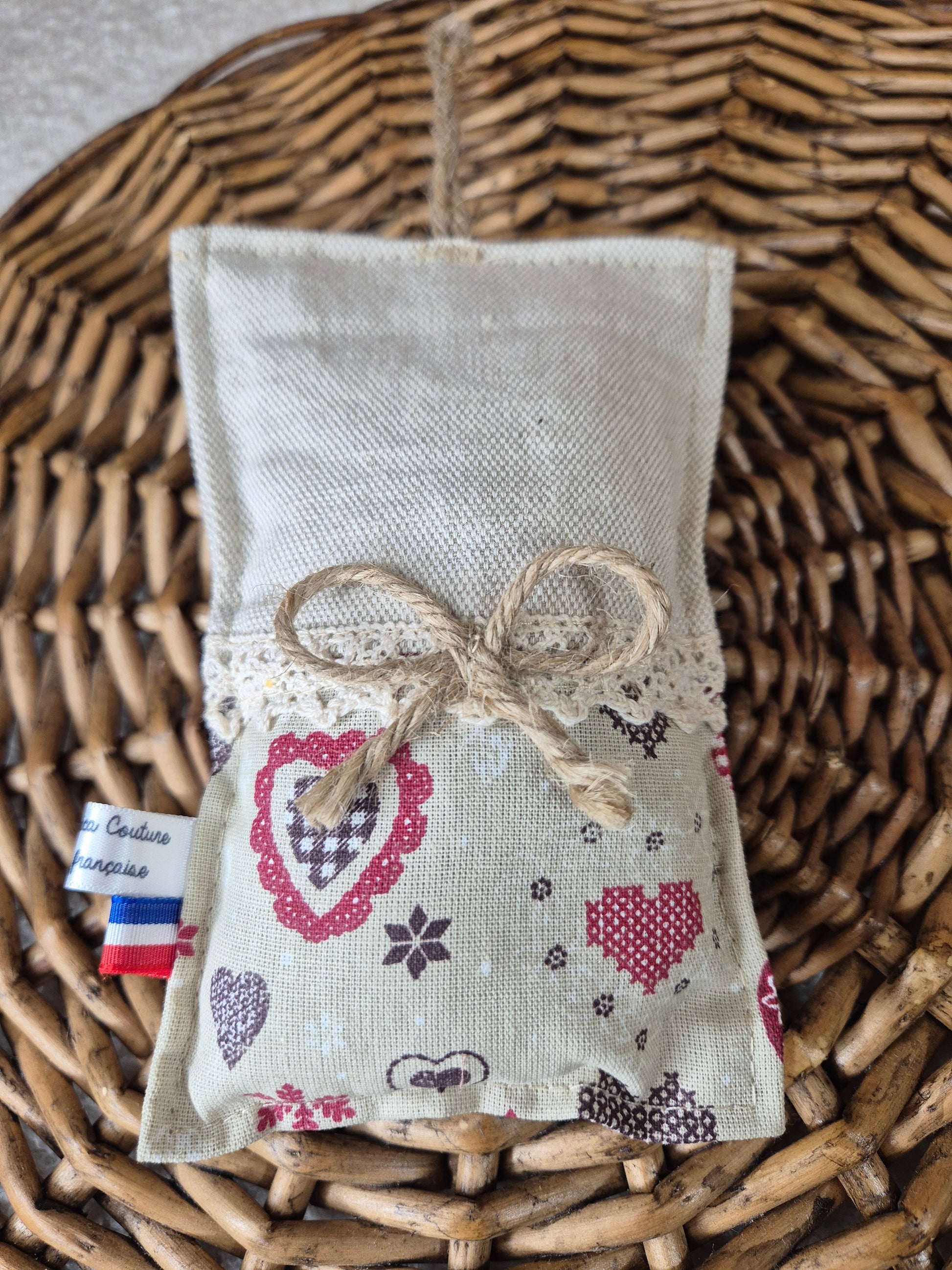 Ce coussin de lavande à suspendre est un accessoire essentiel pour rafraîchir votre penderie et vos tiroirs. Composé d'un sachet de lavande du jardin en toile de coton avec une touche de dentelle et de jute, il diffusera un parfum agréable tout en repoussant les acariens et les odeurs indésirables.